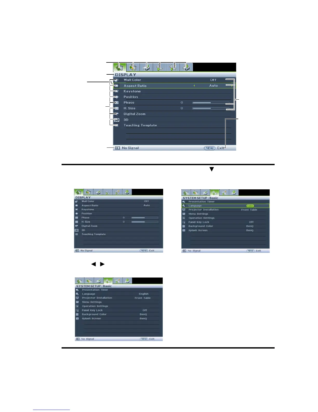 The projector is equipped with On-Screen Display (OSD) menus for making various