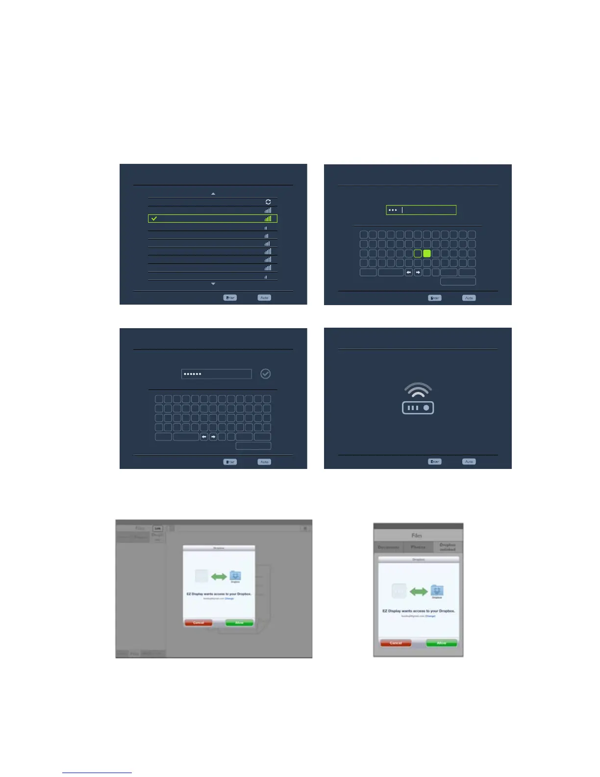 3. Choose the Wi-Fi network which the projector connect to from the AP list (1).