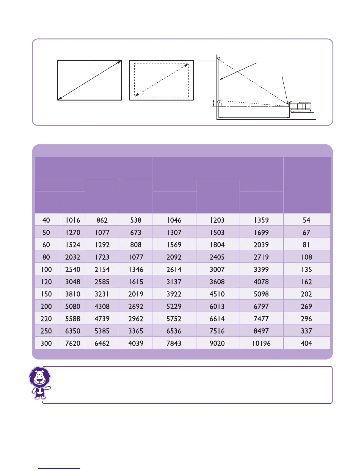 allowance for this projector's optical characteristics. This will help you determine the exact mounting position