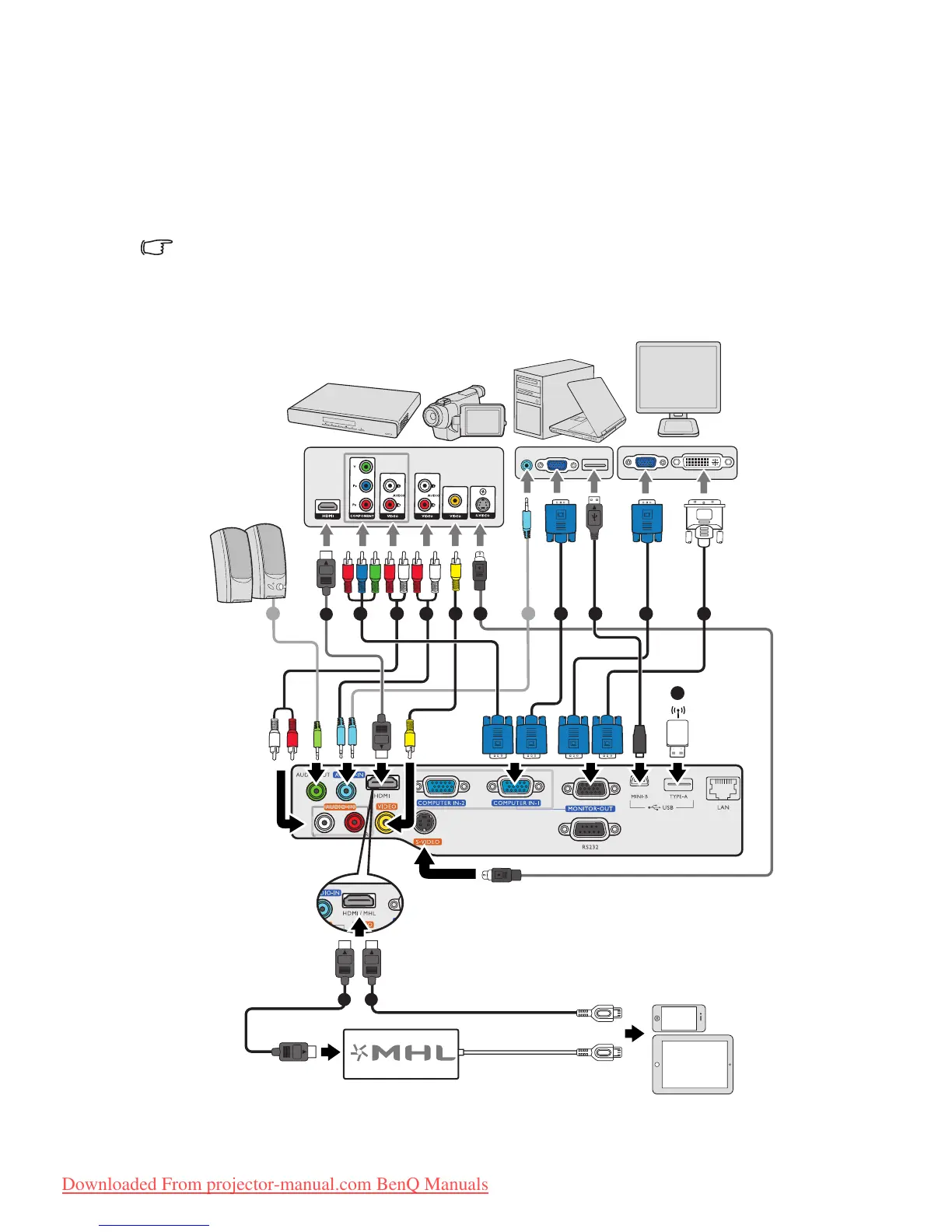 • In the connections shown below, some cables may not be included with the projector (see "Shipping
