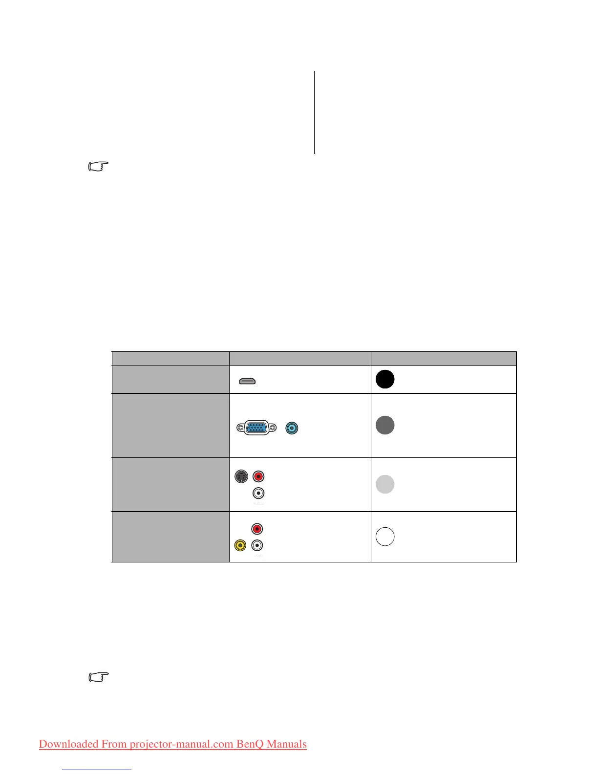 • The projector is only capable of playing mixed mono audio, even if a stereo audio input is connected. See