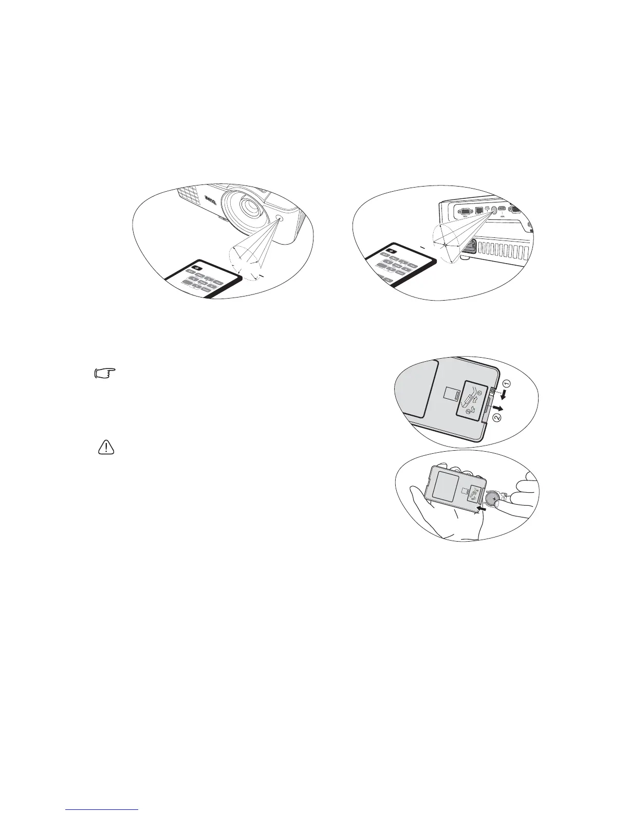 remote control must be held at an angle within 30 degrees perpendicular to the projector's