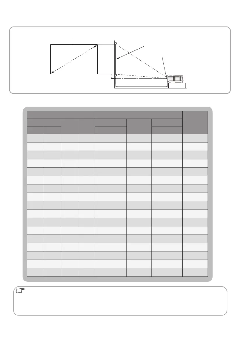 allowance for this projector's optical characteristics. This will help you determine the exact mounting position