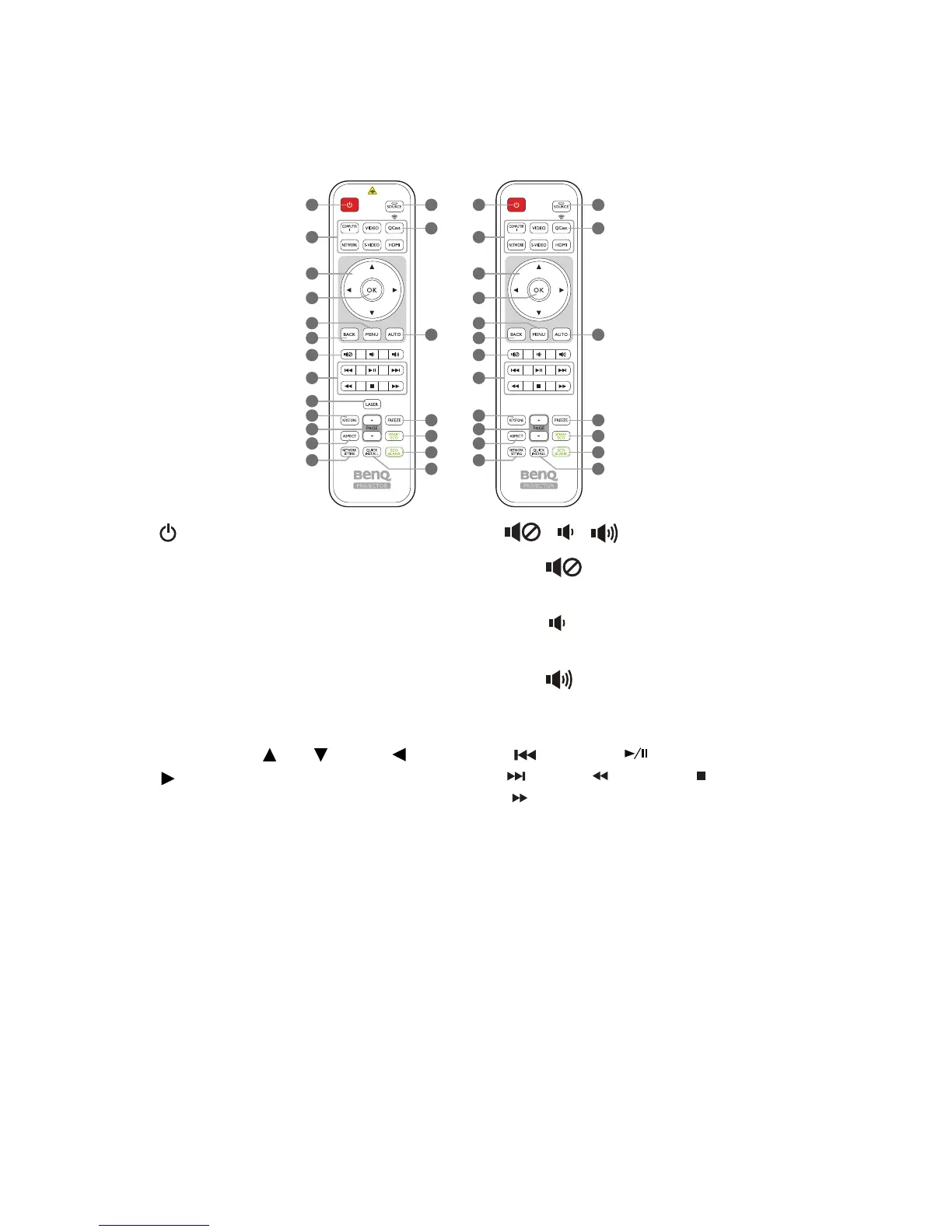 • : Toggles projector audio