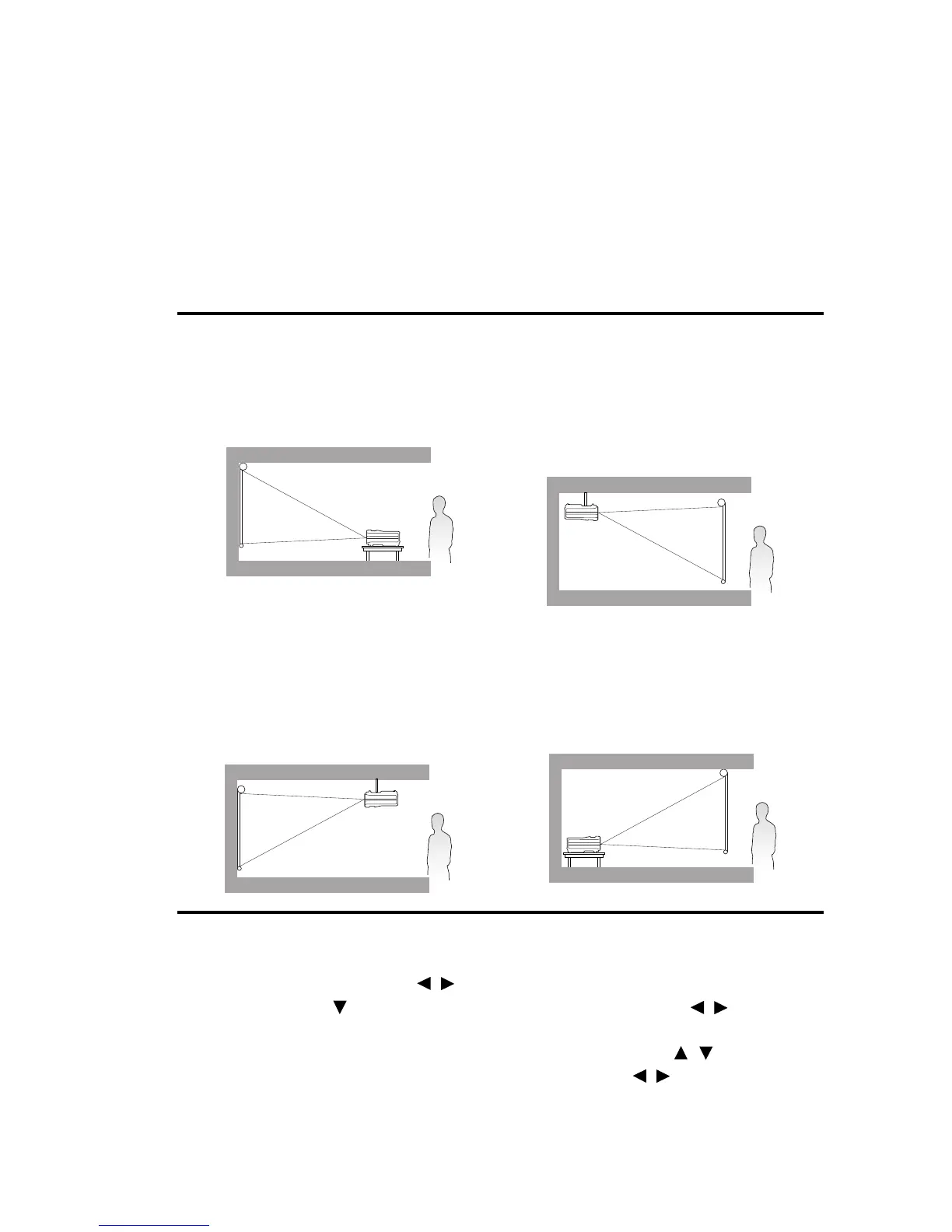 Projector Installation is highlighted. Press OK and press / to select a setting.