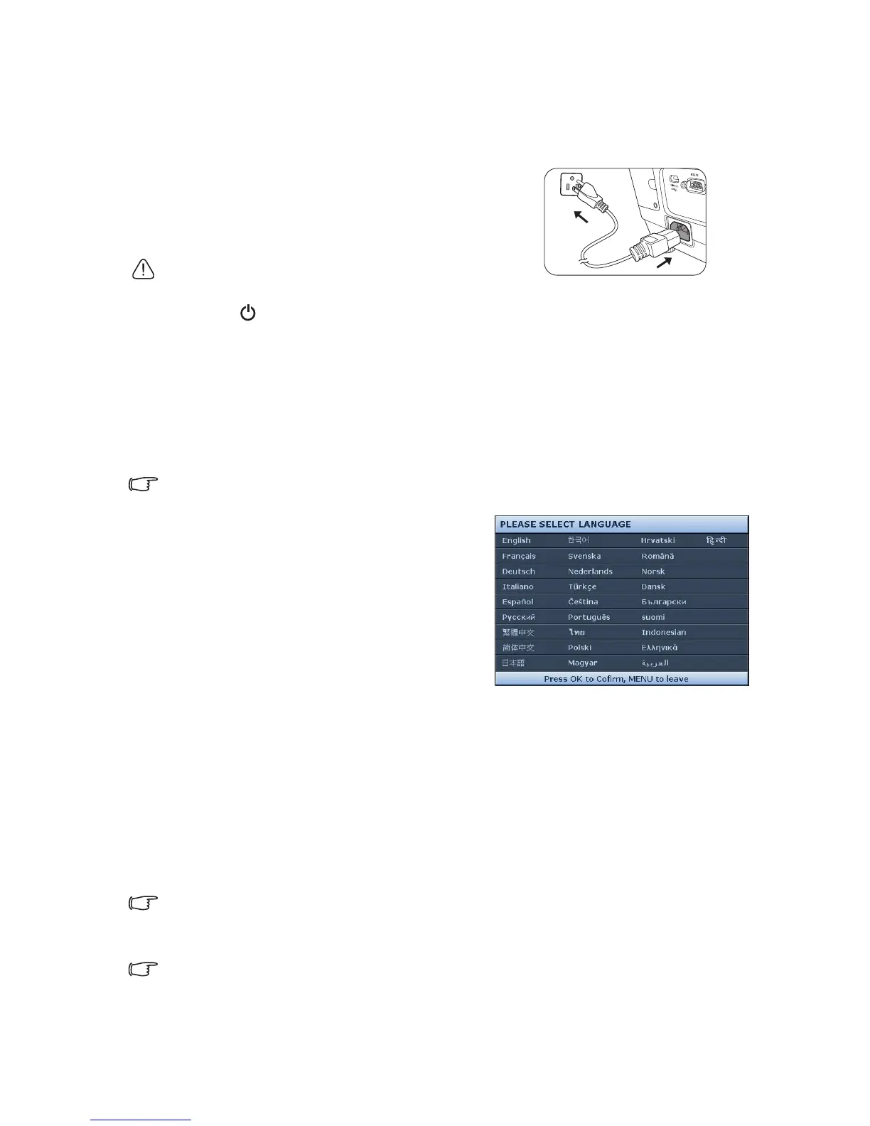 Starting up the projector