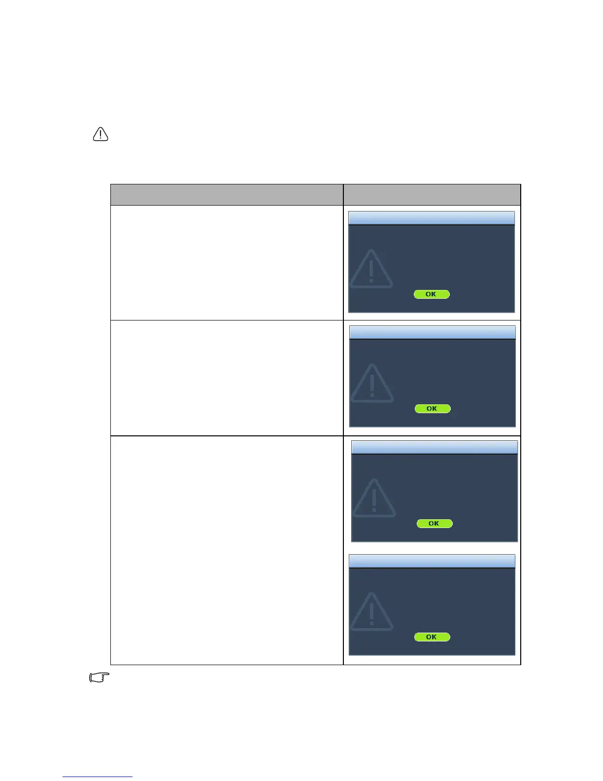 installing a new lamp. An old lamp may cause a malfunction in the projector and in some