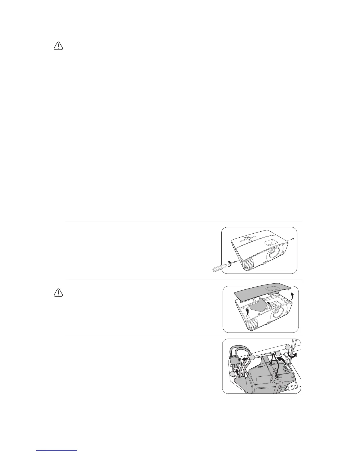• To reduce the risk of severe burns, allow the projector to cool for at least 45 minutes before replacing the