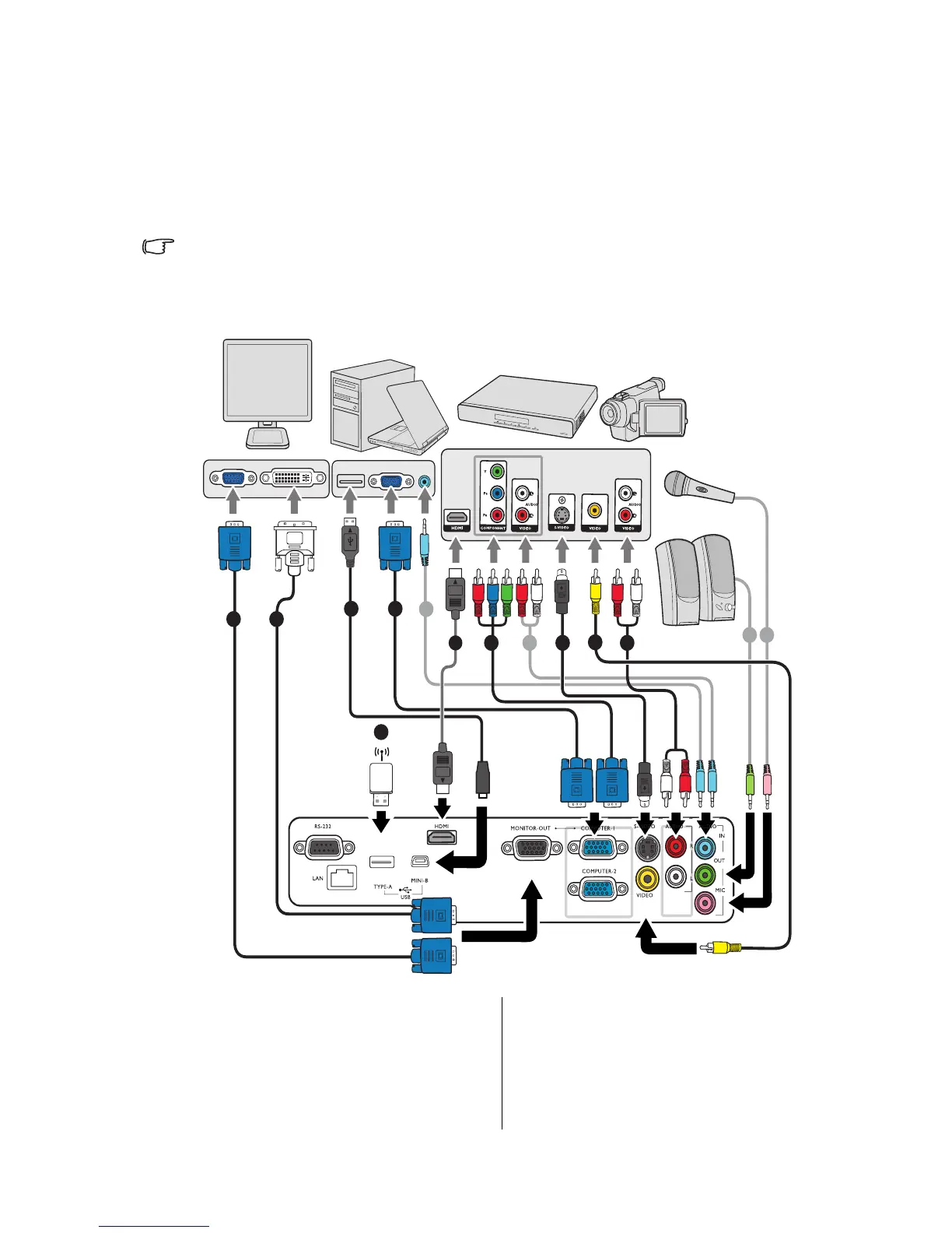• In the connections shown below, some cables may not be included with the projector (see