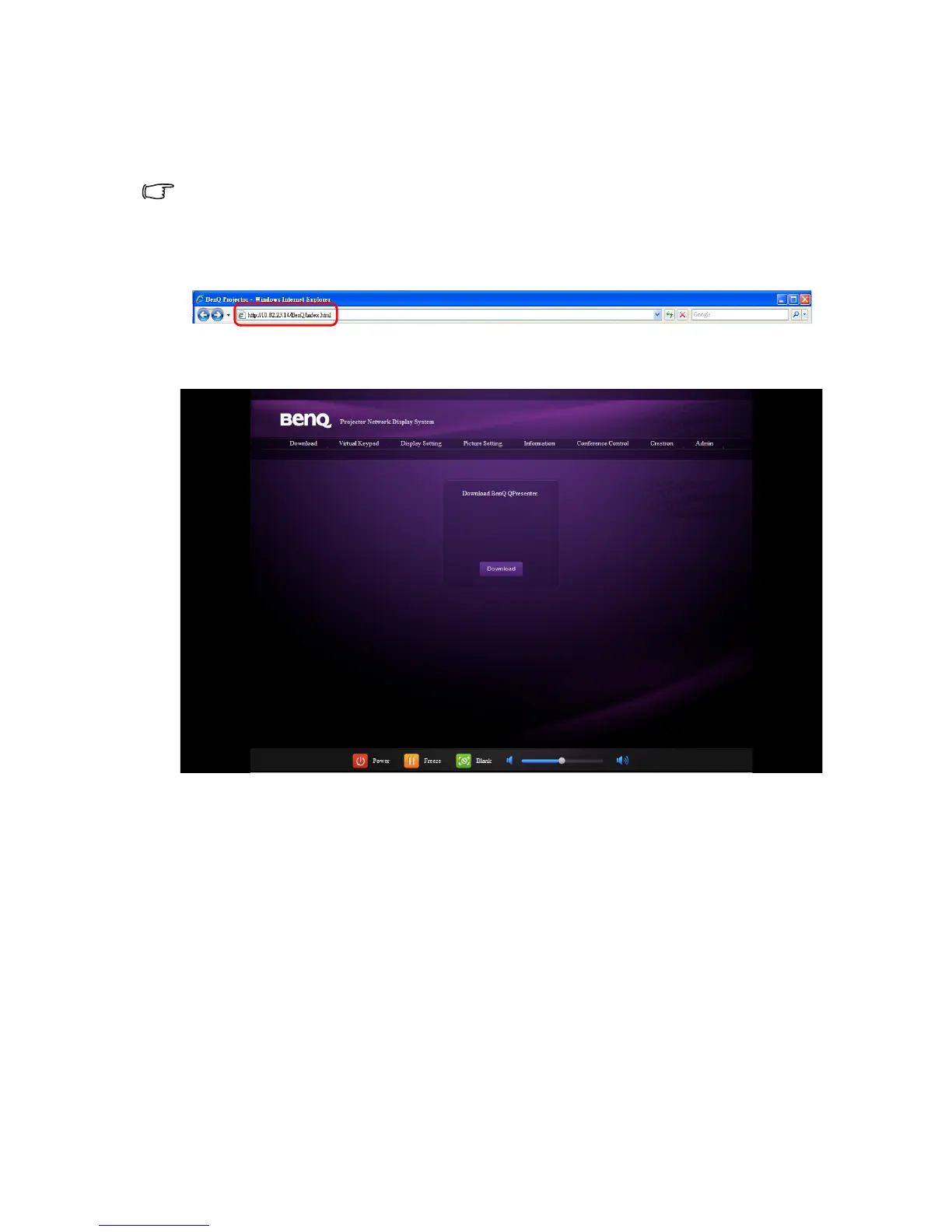 1. Enter the address of the projector in the address bar of your browser and press Enter.