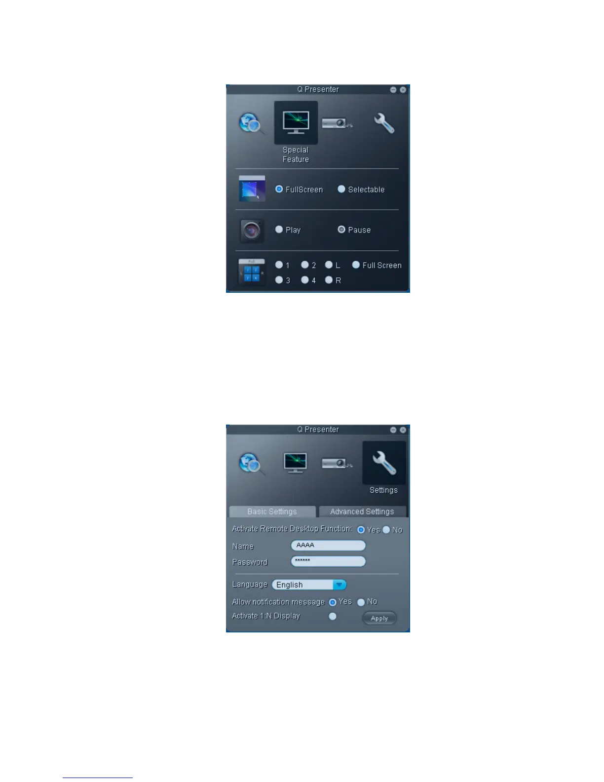 To activate Remote Desktop function, click Yes. Type the name and password for