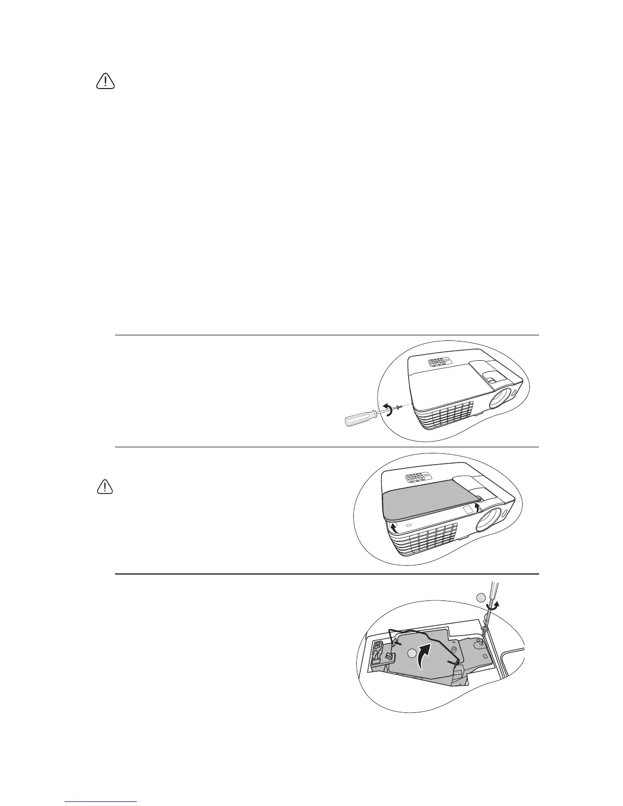 the lens, do not touch the empty lamp compartment when the lamp is removed.