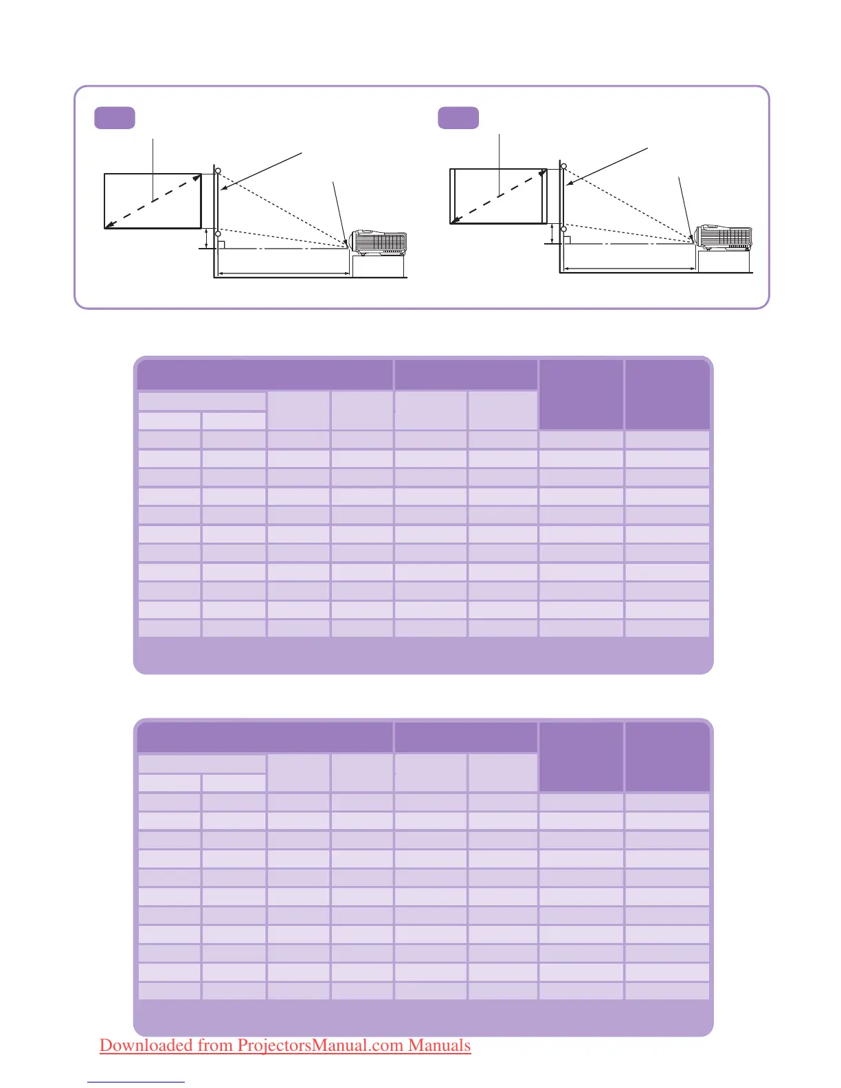 Table A2: The screen aspect ratio is 16:9 and the projected picture is 16:10