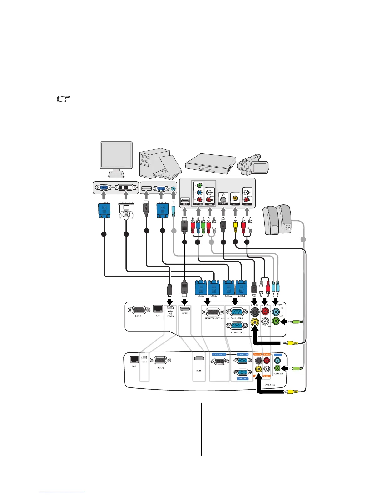• In the connections shown below, some cables may not be included with the projector (see "Shipping