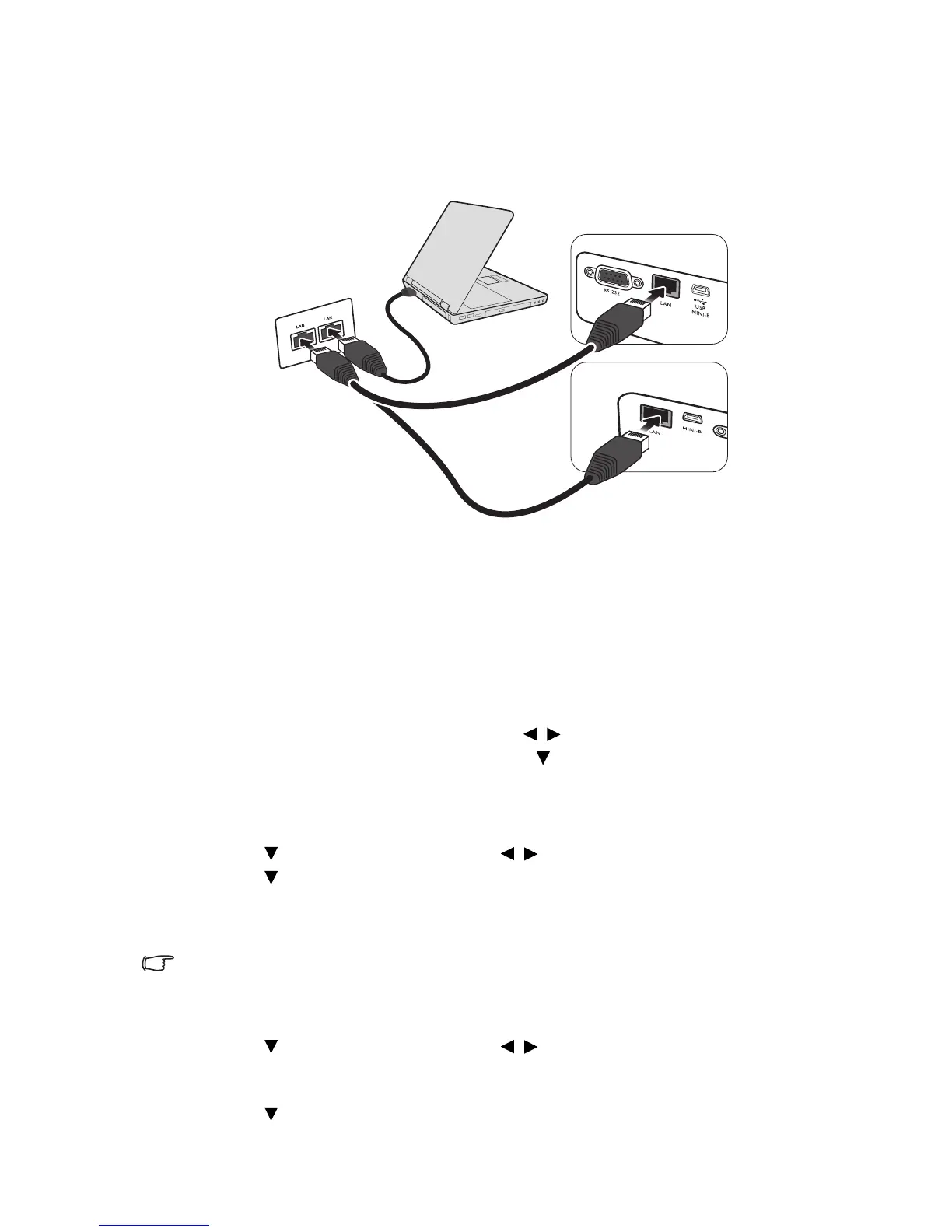 1. Take a RJ45 cable and connect one end to the RJ45 LAN input jack of the projector