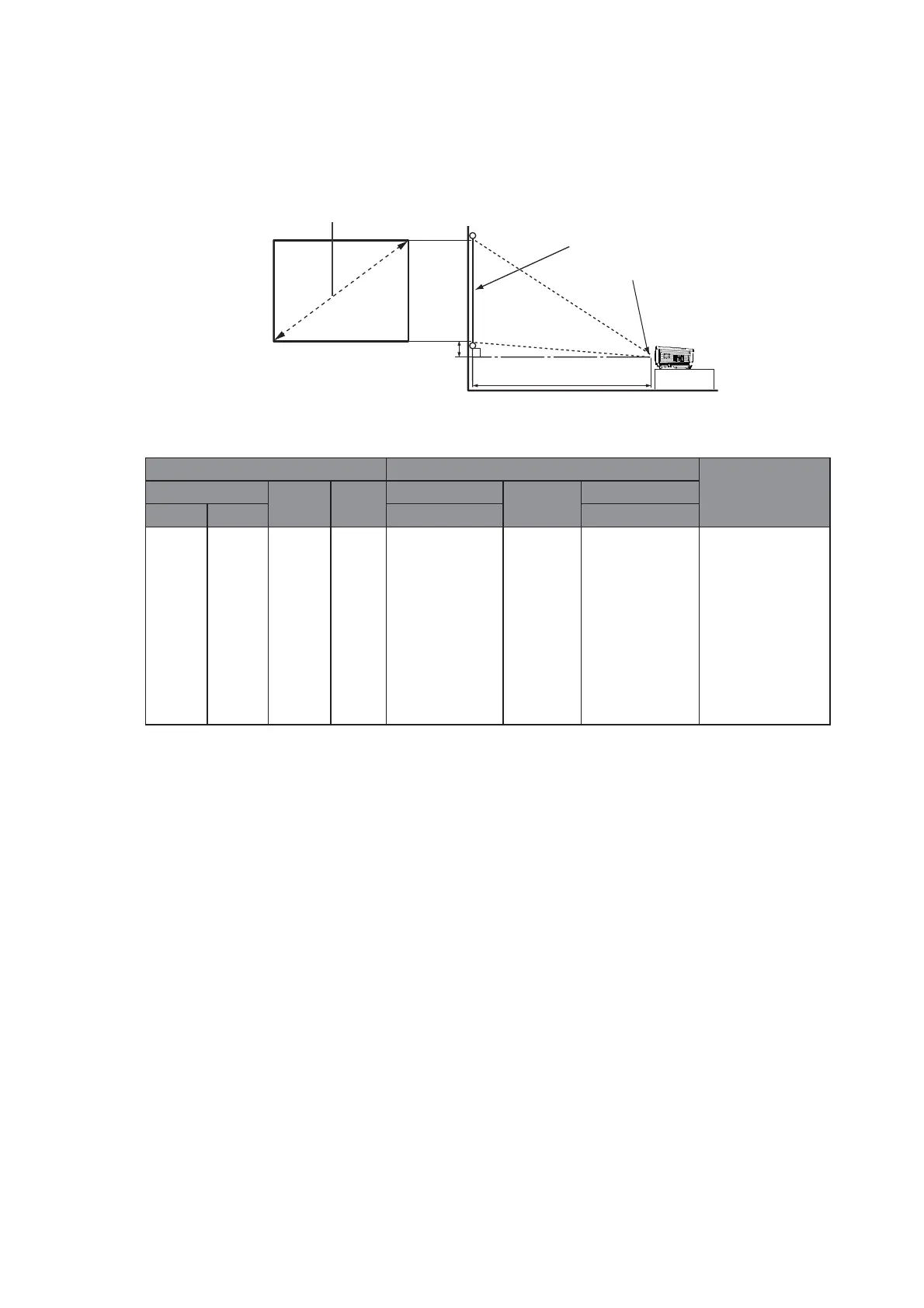 row showsthat a 150'' (about 3810 mm) screen is required.