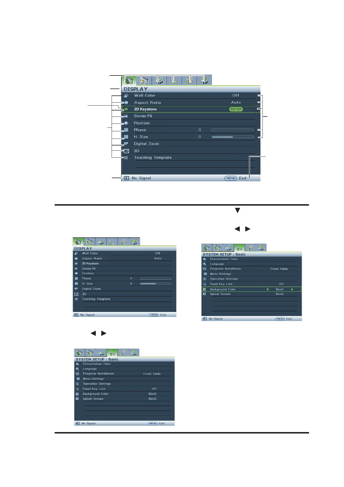 The projector is equipped with On-Screen Display (OSD) menus for making various