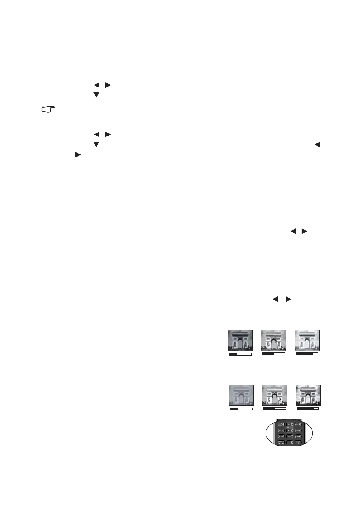 6. Press to select a sub-menu item to be changed and adjust the value with /