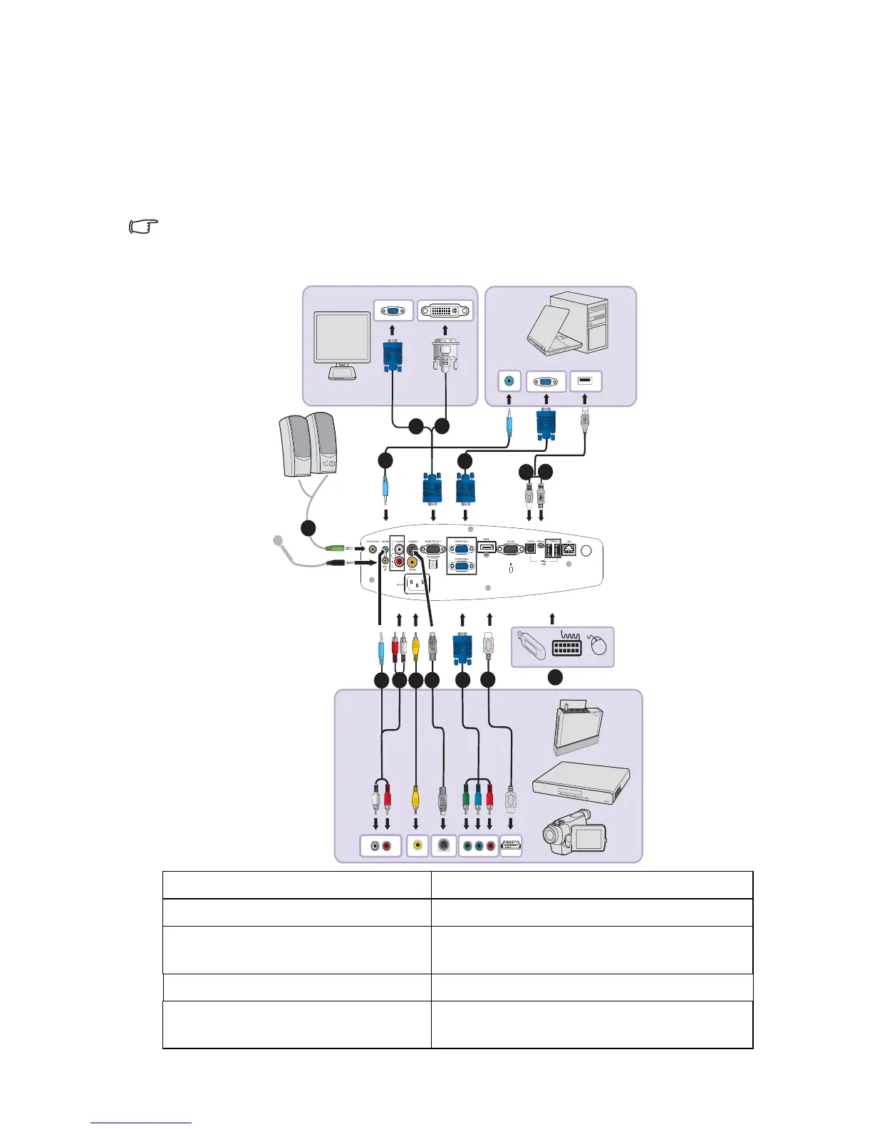• In the connections shown below, some cables may not be included with the projector (see
