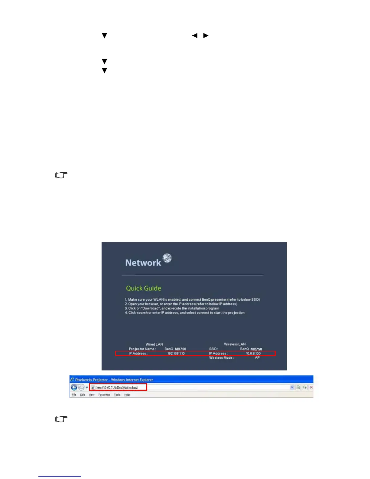 1. Enter the address of the projector in the address bar of your browser and press Enter.