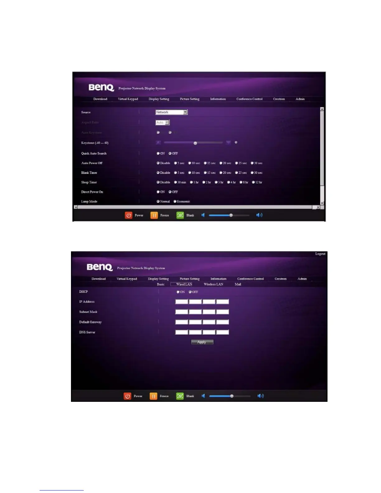 The Display Setting page allows you to operate the projector as if you were using the OSD