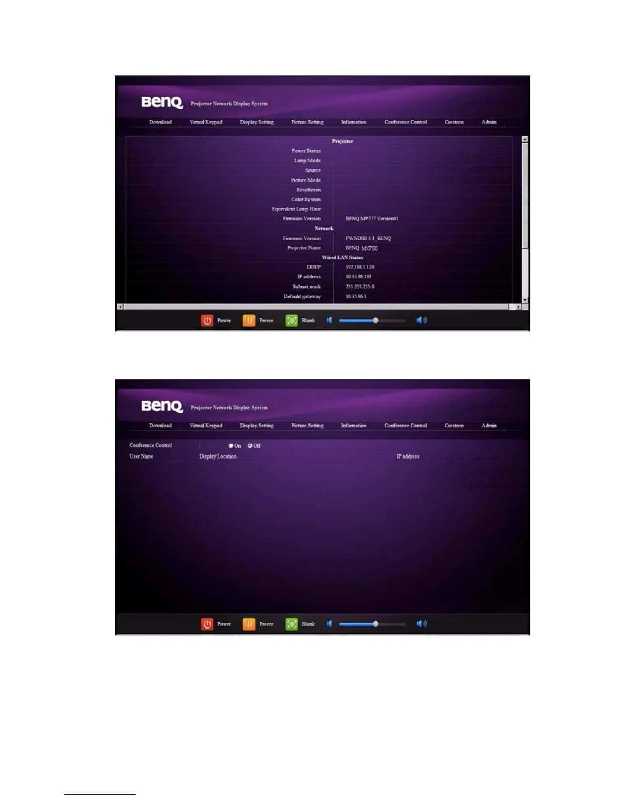 The Conference Control page allows you to control computer’s display status of all the