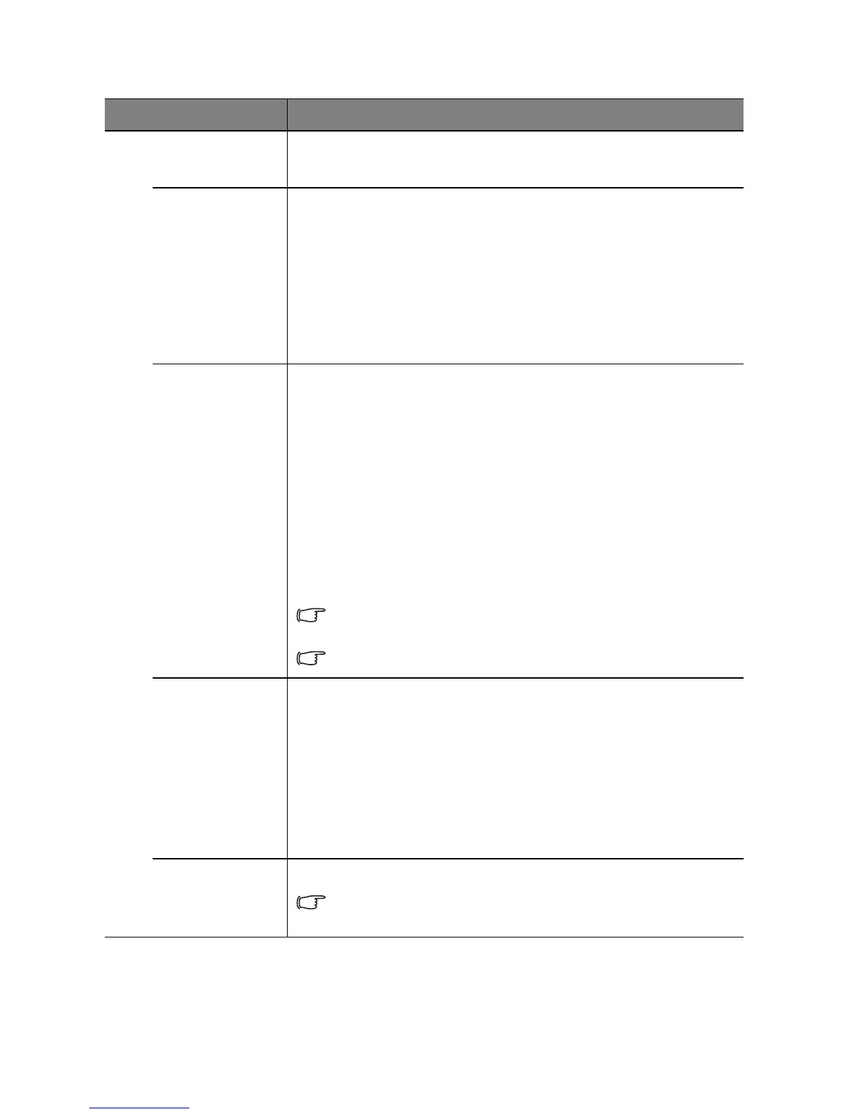 User 1, User 2, Language, Projector Position, High Altitude