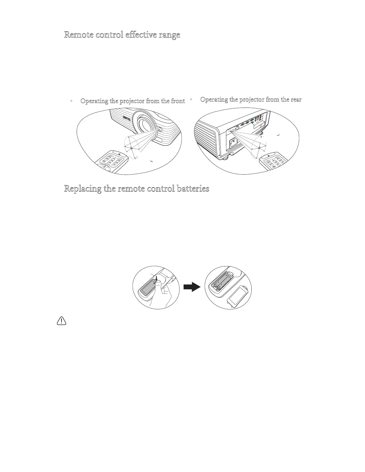 BenQ MX760 - Replacing the Remote Control Batteries; Remote Control Effective Range
