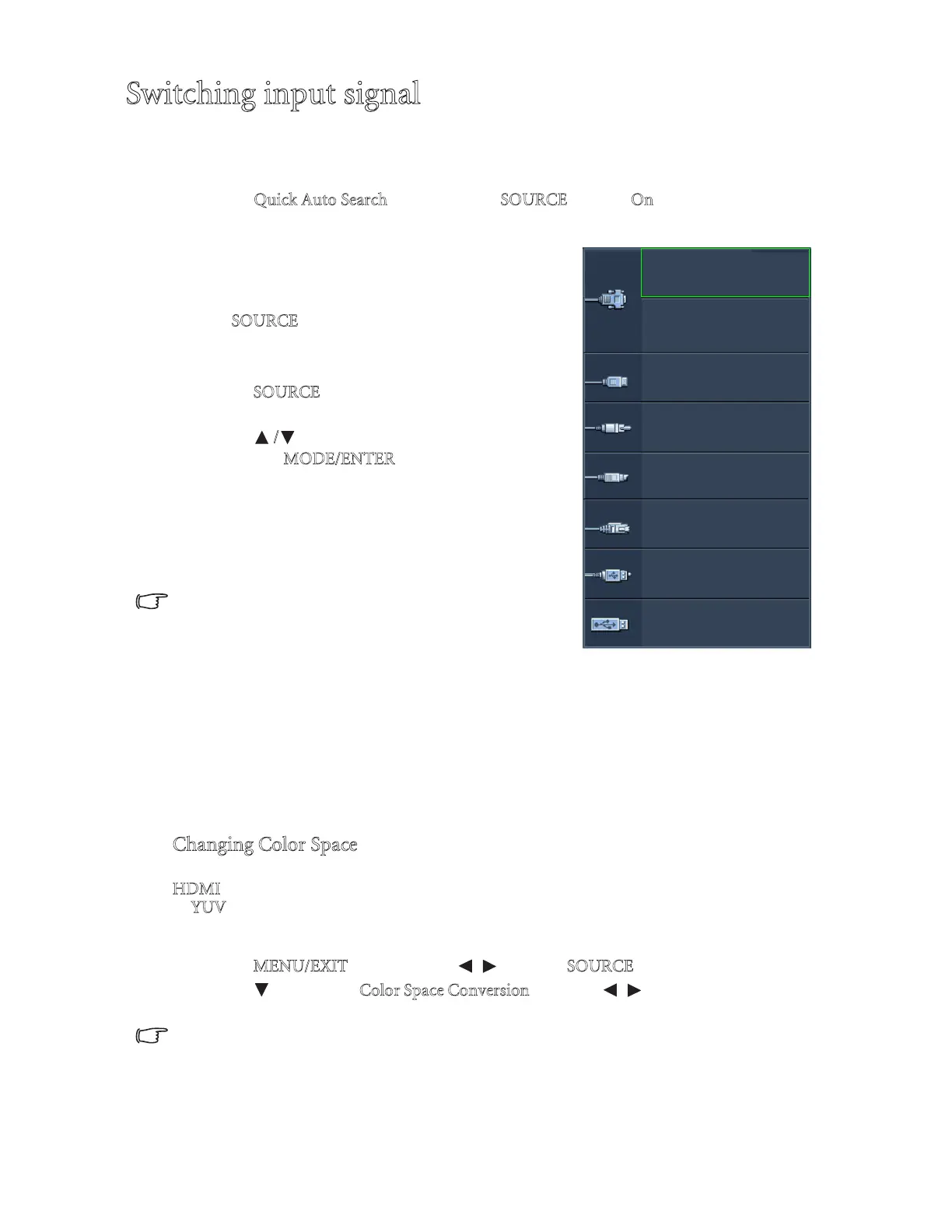 1. Press MENU/EXIT and then press / until the SOURCE menu is highlighted.