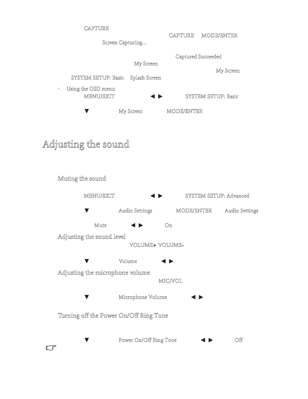The sound adjustments made as below will have an effect on the projector speakers. Be sure