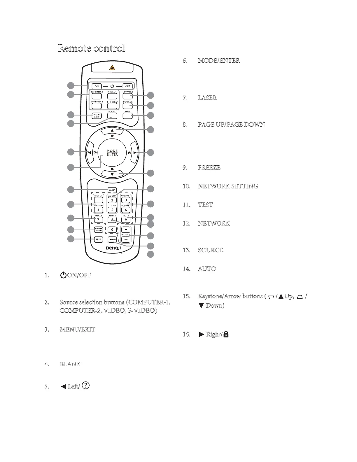 BenQ MX761 - Remote Control