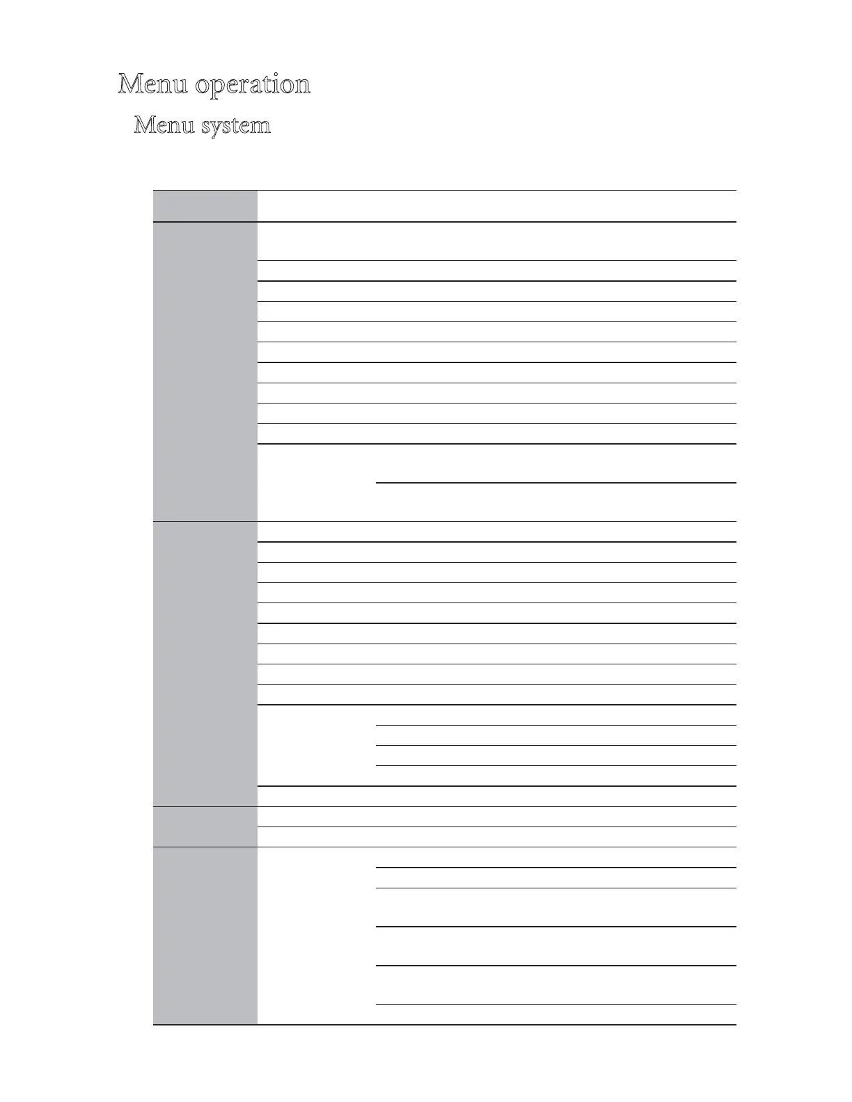 Main menu Sub-menu Options