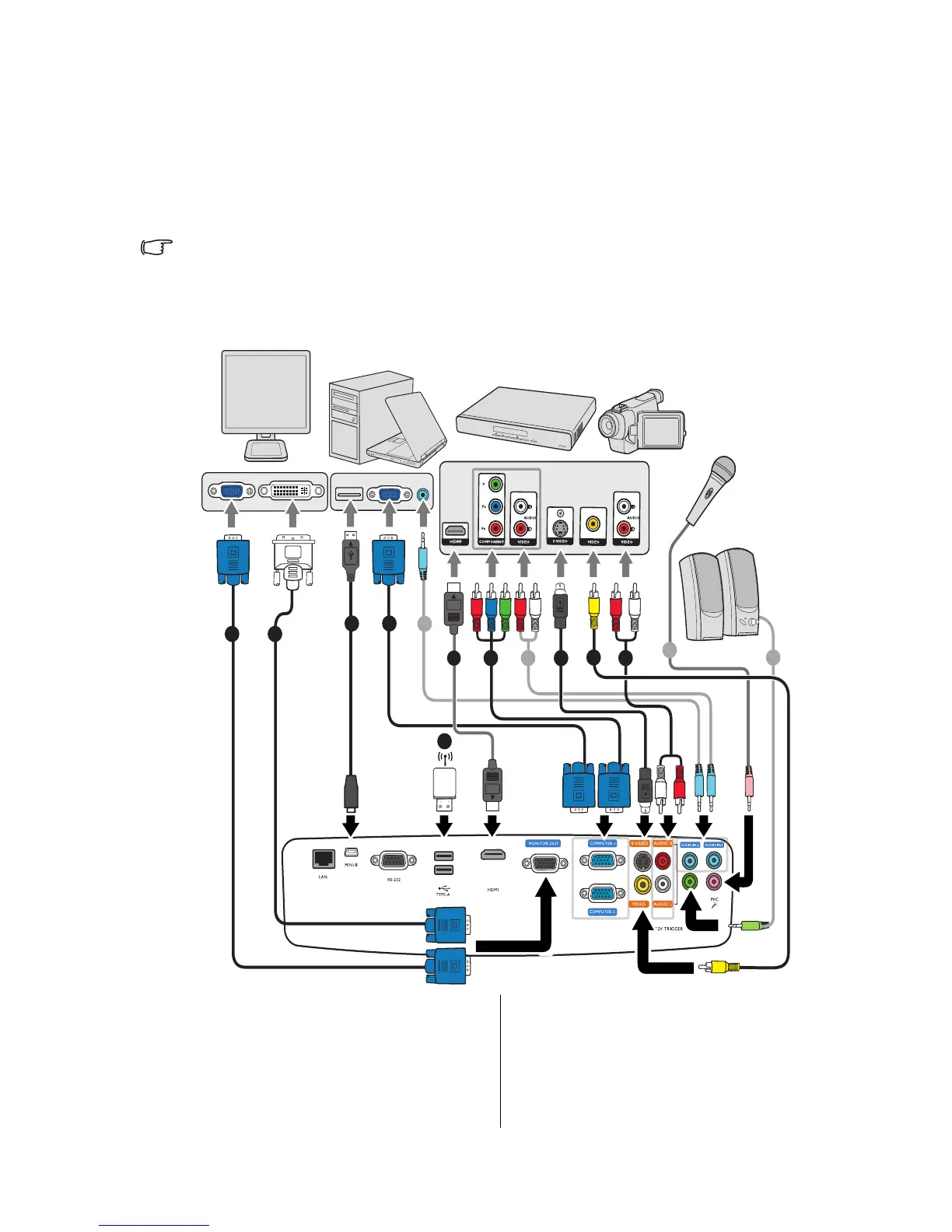 • The connection illustrations below are for reference only. The rear connecting jacks
