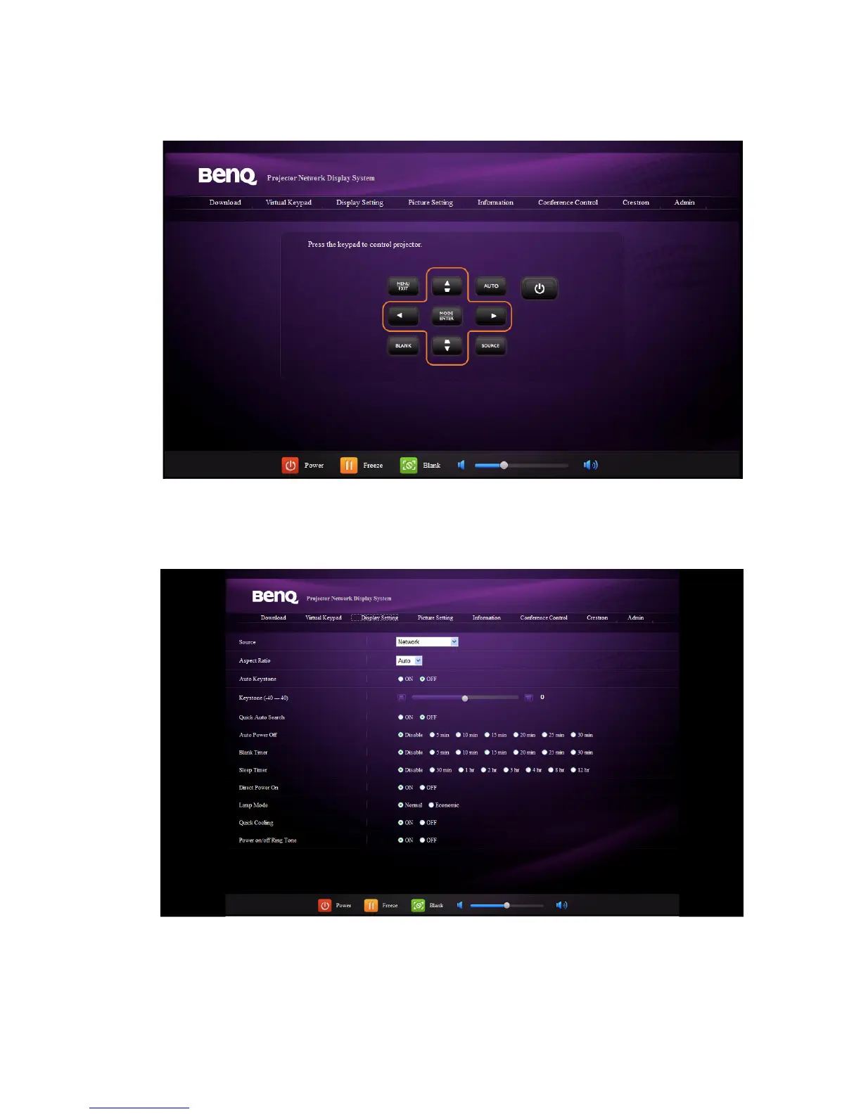 projector as if using the physical keypad on the projector. See "Projector" on page 10