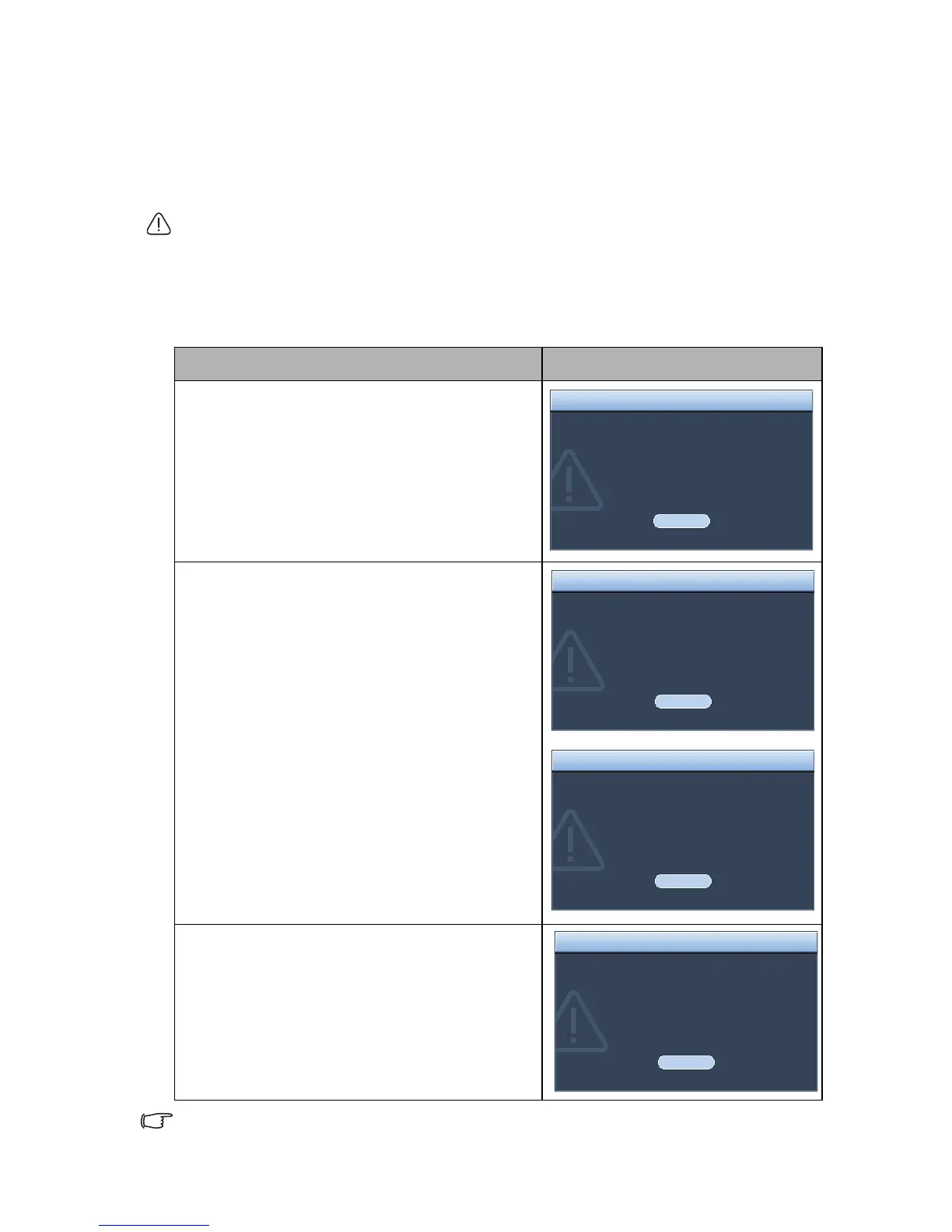 the lamp, please install a new lamp or consult your dealer. An old lamp may cause a