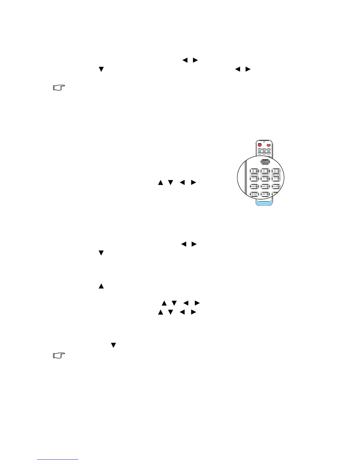 6. Use the directional arrows ( , , , ) on the projector or remote control to