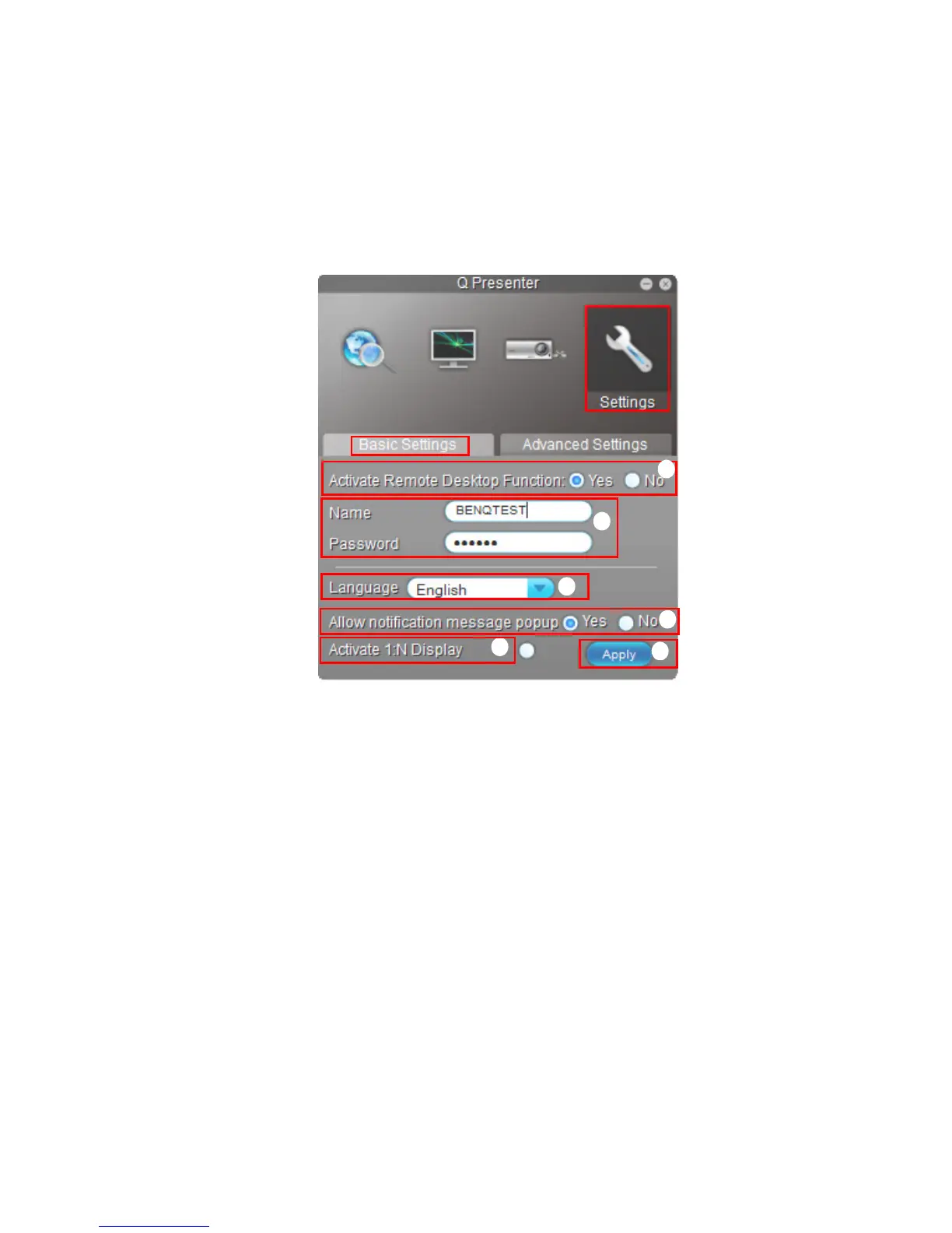The Basic and Advanced Settings pages allow you to configure the Q Presenter.