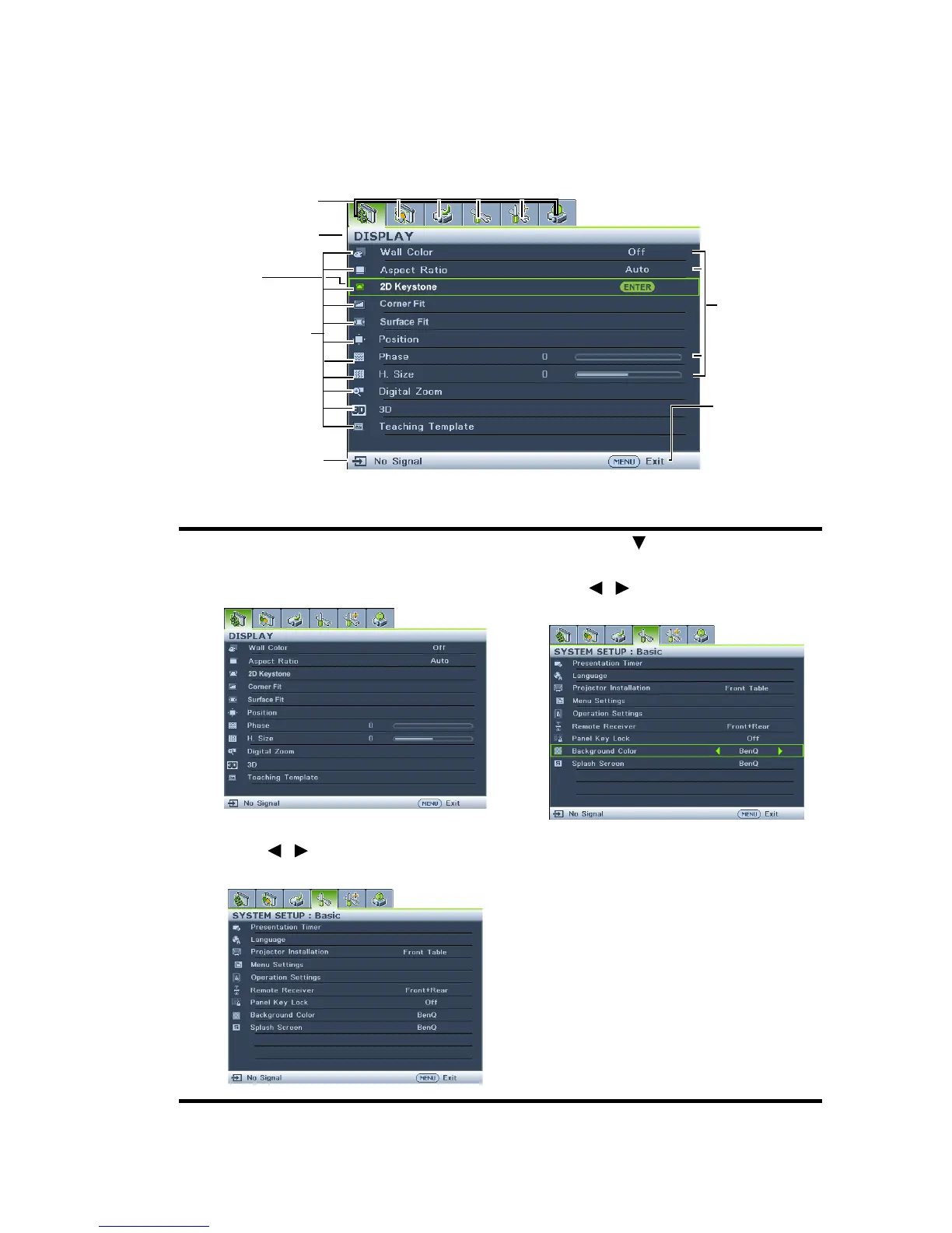 The projector is equipped with On-Screen Display (OSD) menus for making various