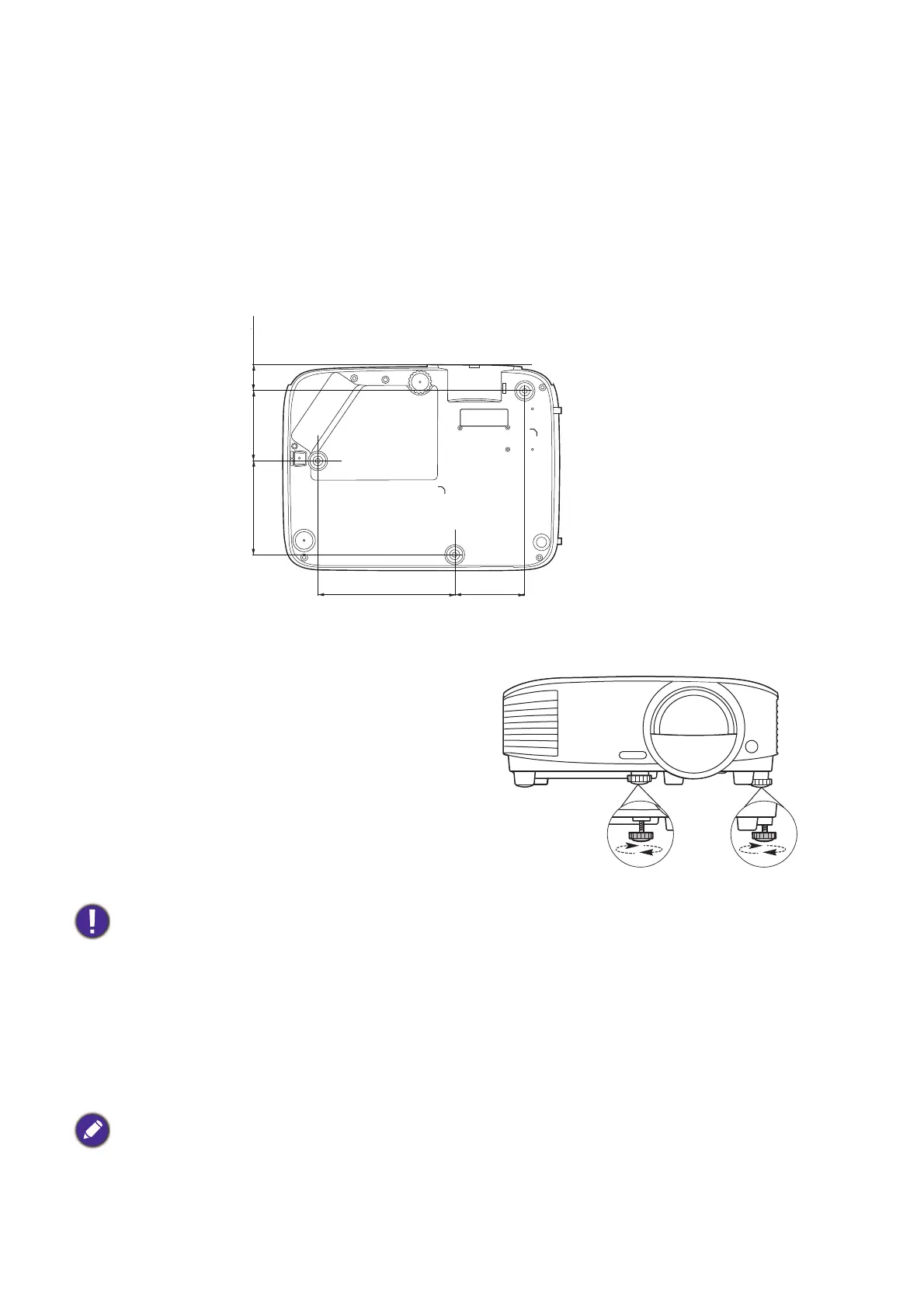 exceeding the recommended range may cause damage to the projector and subsequently falling off.