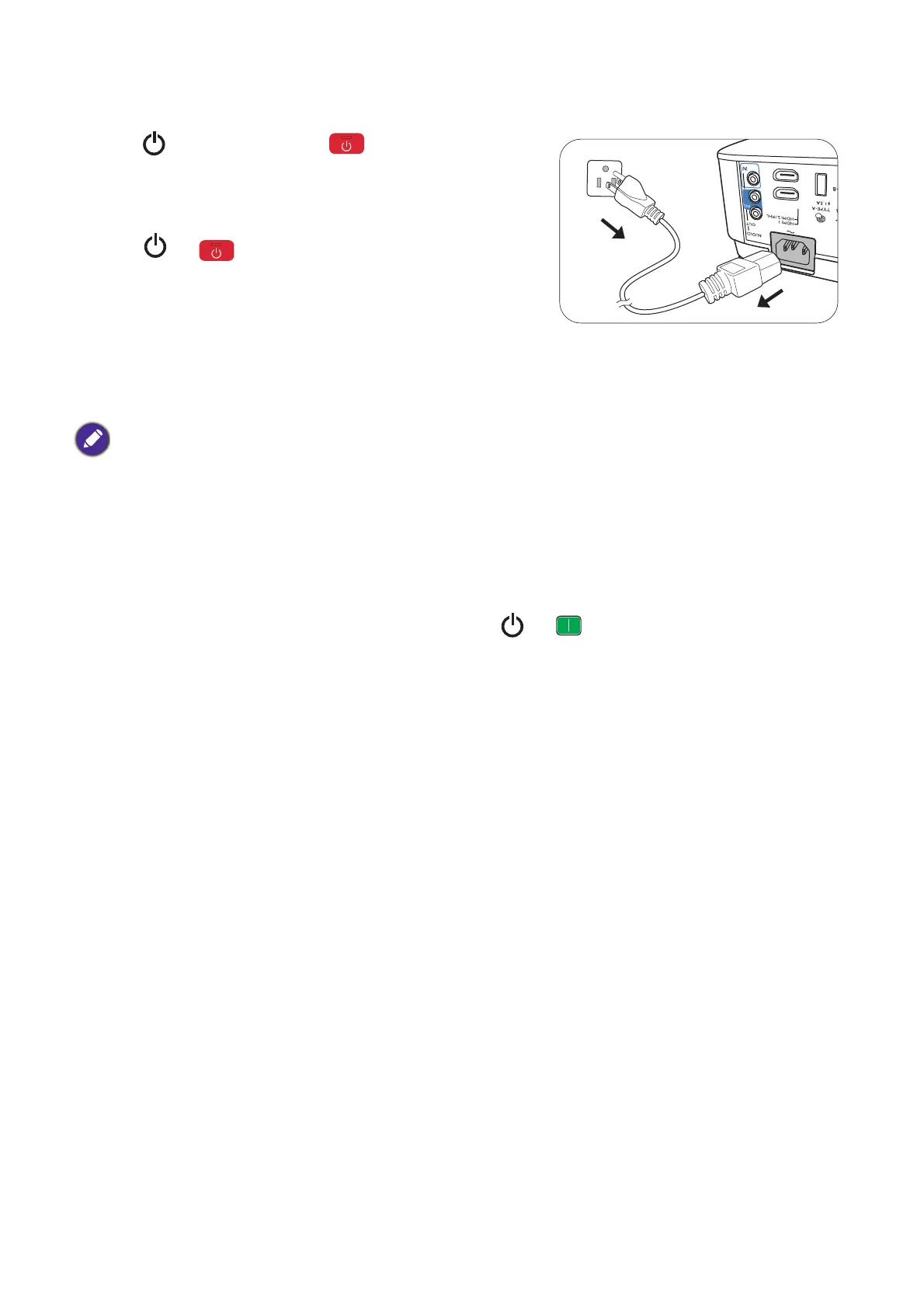• Avoid turning on the projector immediately after turning it off as excessive heat may shorten lamp life.