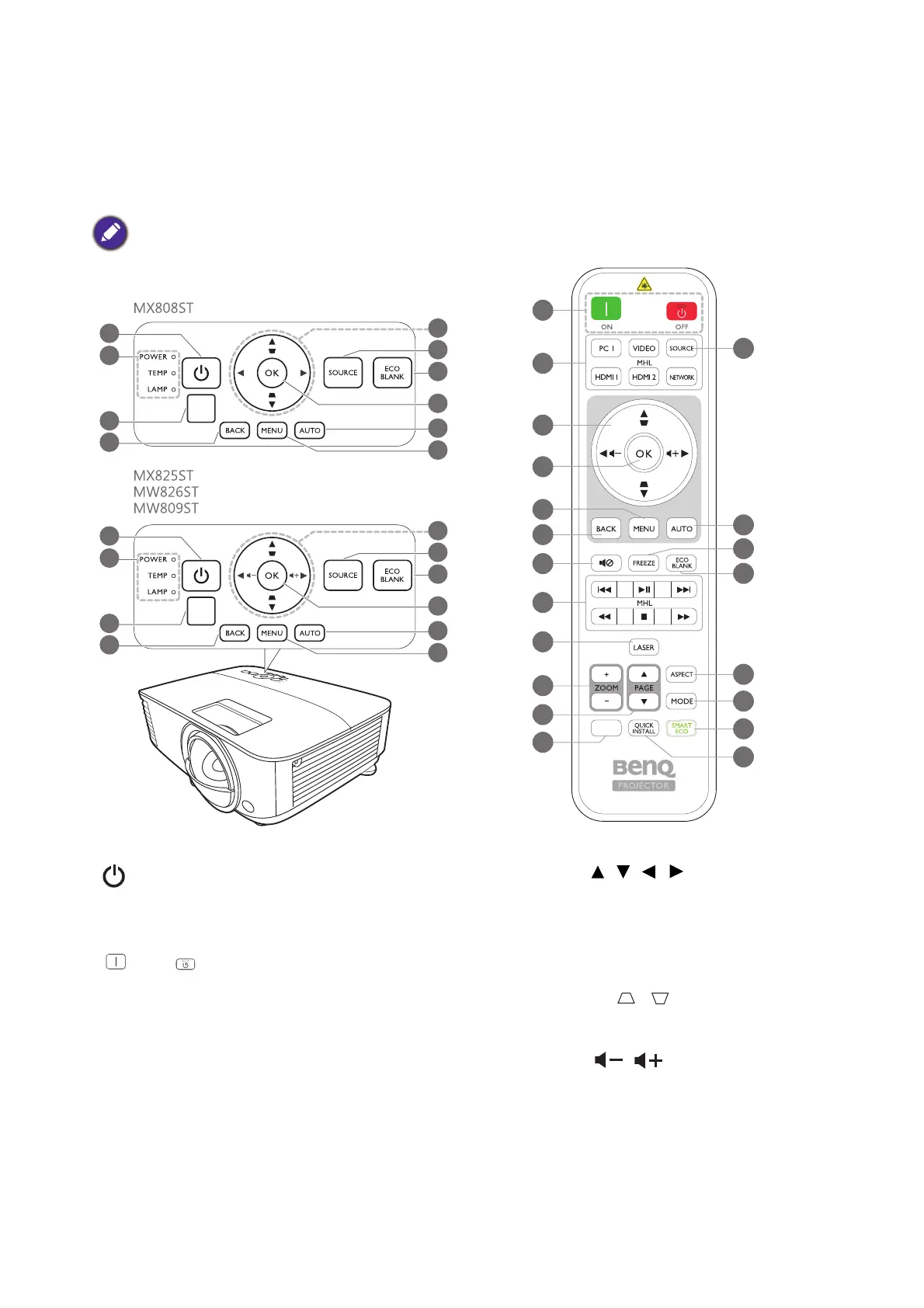 • The remote control is without laser pointer