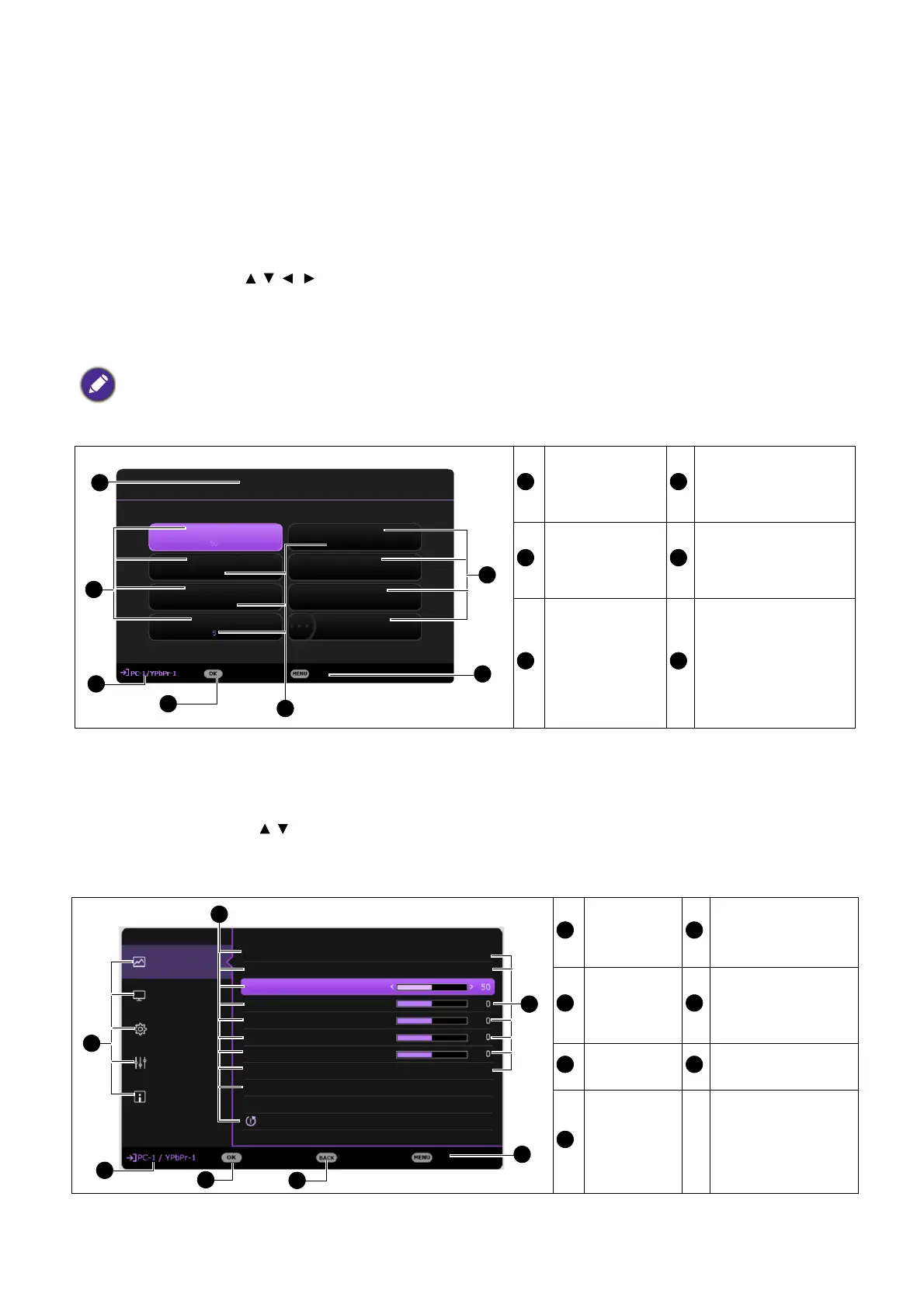 The projector is equipped with 2 types of On-Screen Display (OSD) menus for making various