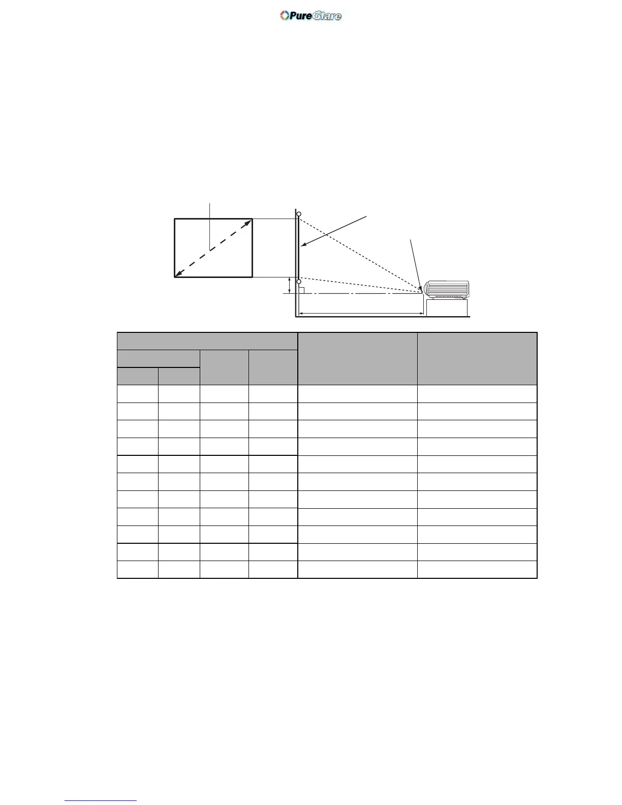 If your measured projection distance is 1.0 m (1000 mm), the closest match in the "Distance