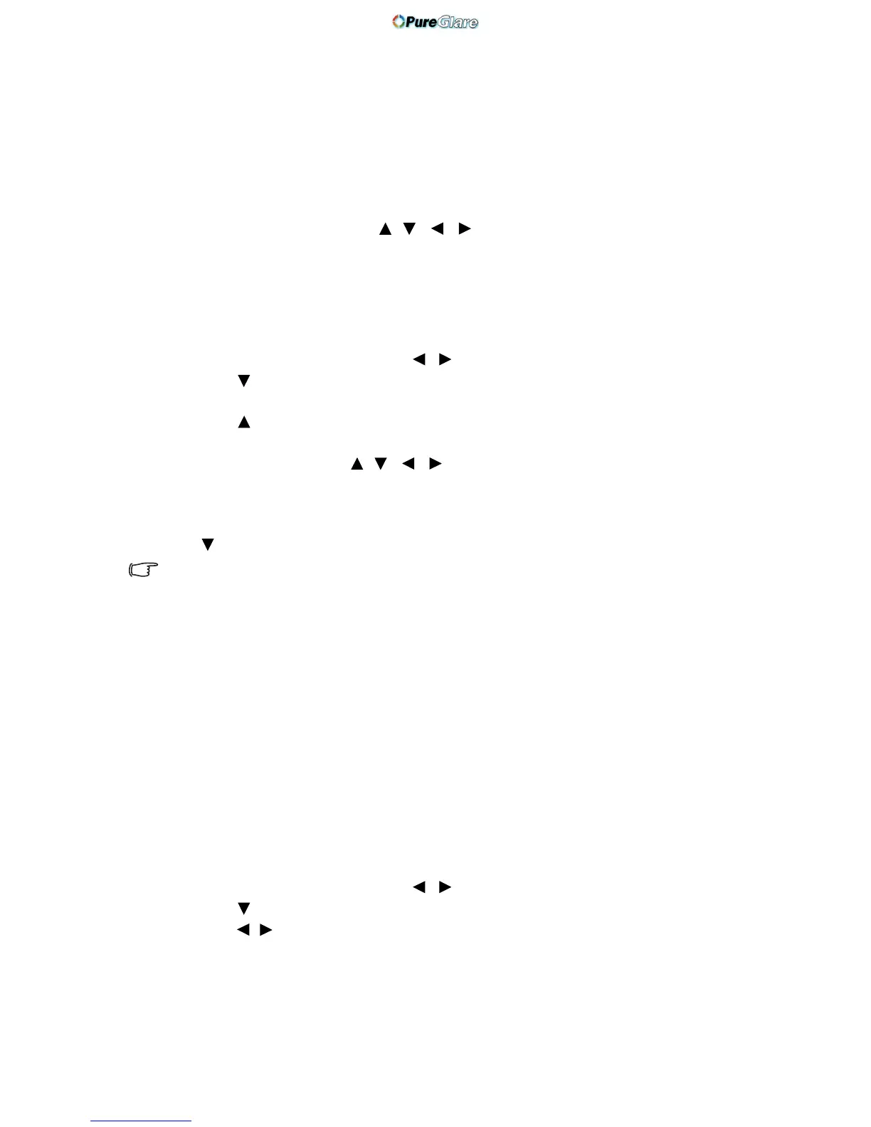 the directional arrows ( , , , ) on the projector or remote control to navigate