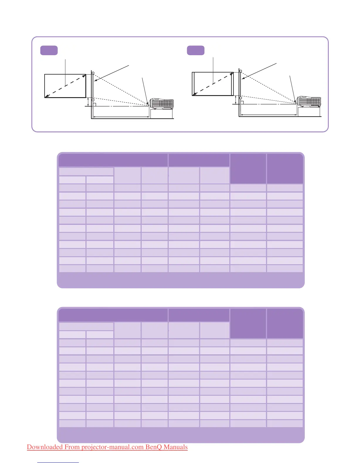 Table A1: The screen aspect ratio is 16:9 and the projected picture is 16:9