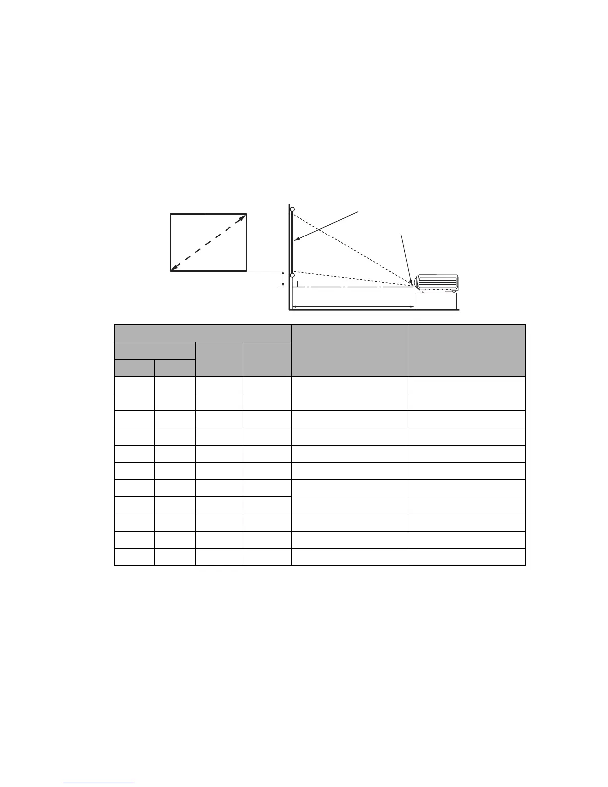 For example, if you are using a 120-inch screen, the recommended projection distance is