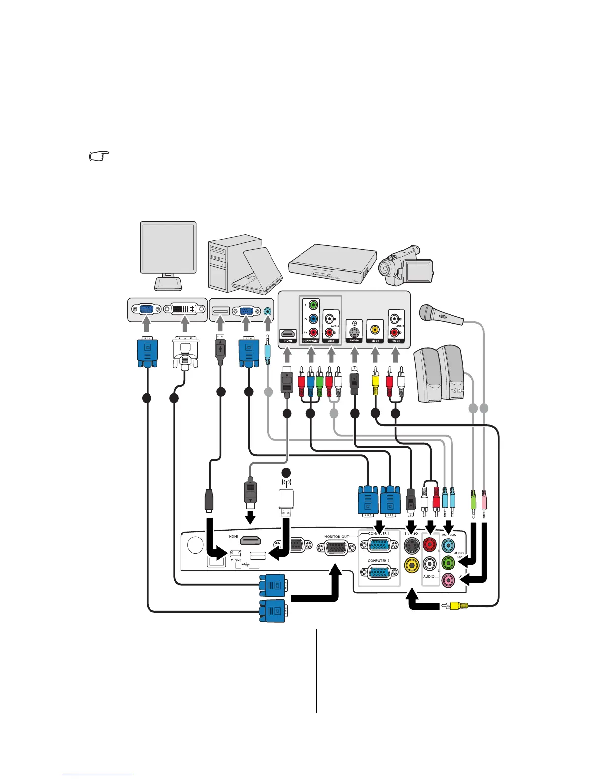 • The connection illustrations below are for reference only. The rear connecting jacks