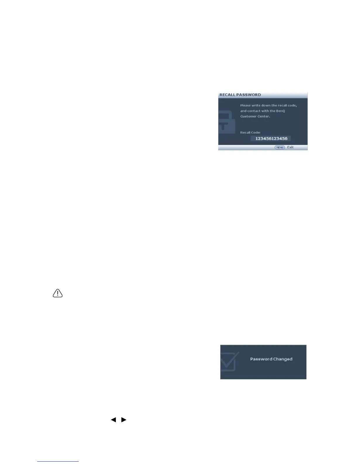 the password recall procedure. See "Entering the password recall procedure" on page 30