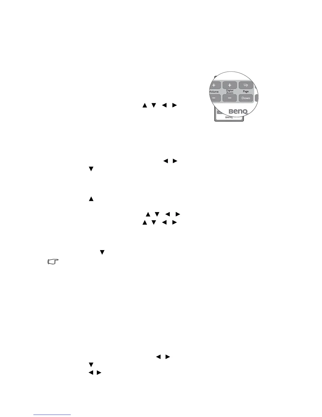 6. Use the directional arrows ( , , , ) on the projector or remote control to