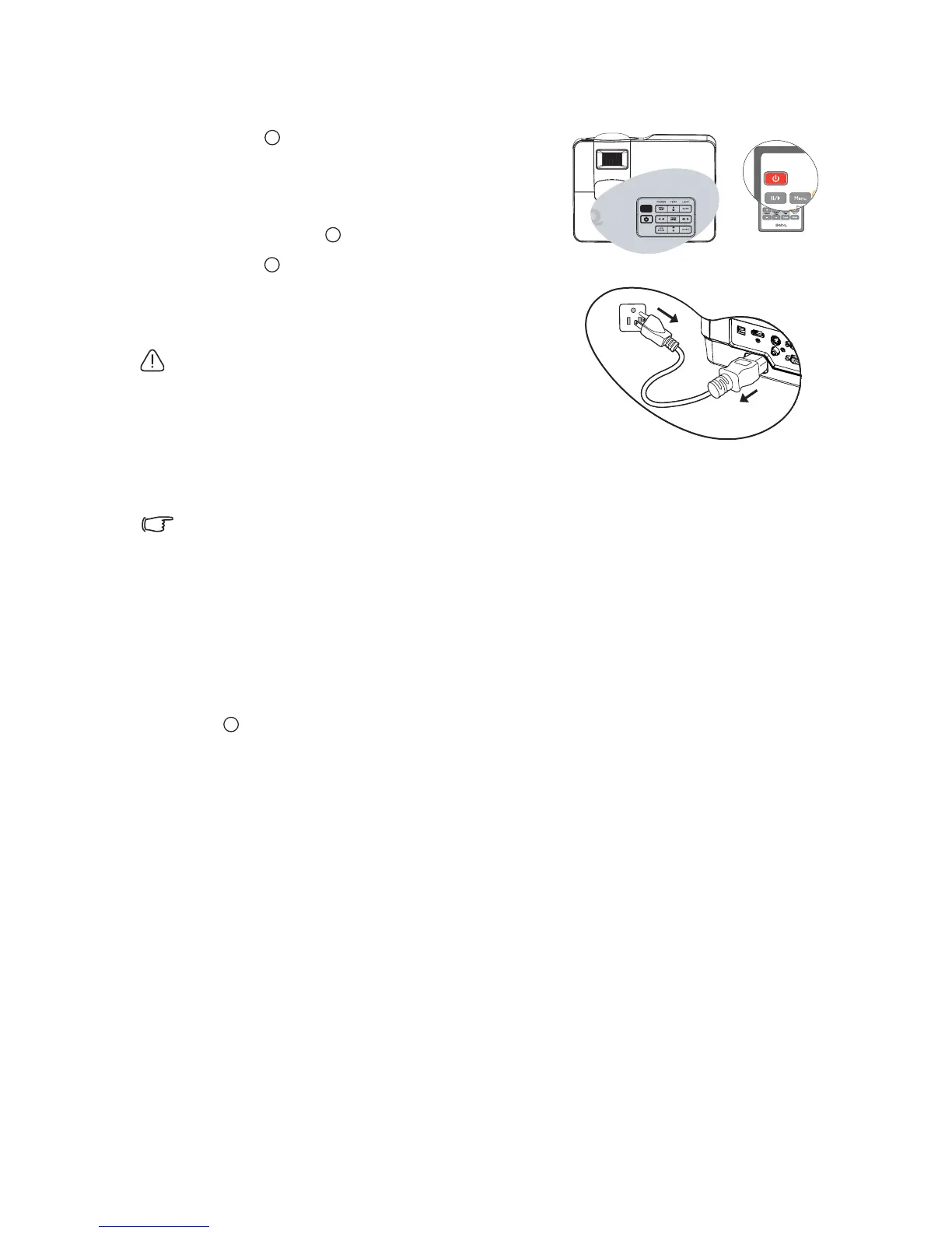 the projector, the fans will run for a few minutes to cool down. Press Power again to start